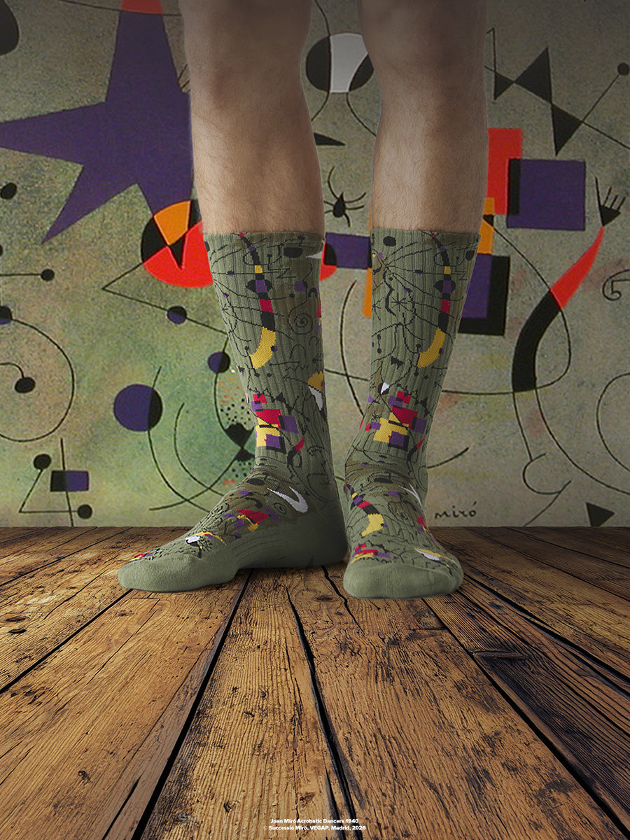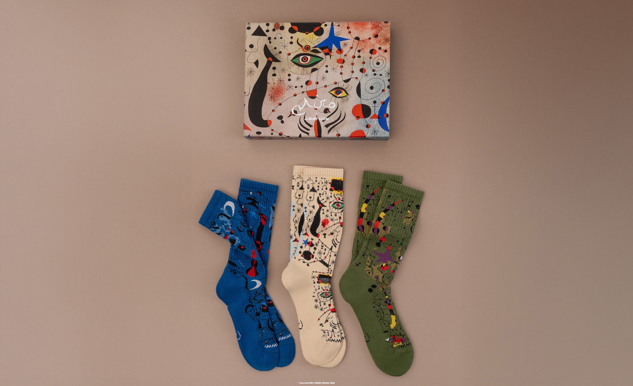 La visión de Miró de integrar el arte en la vida cotidiana conecta de forma natural con la filosofía de Jimmy Lion: transformar calcetines, camisetas y otras prendas básicas en auténticas obras de arte para disfrutar cada día.