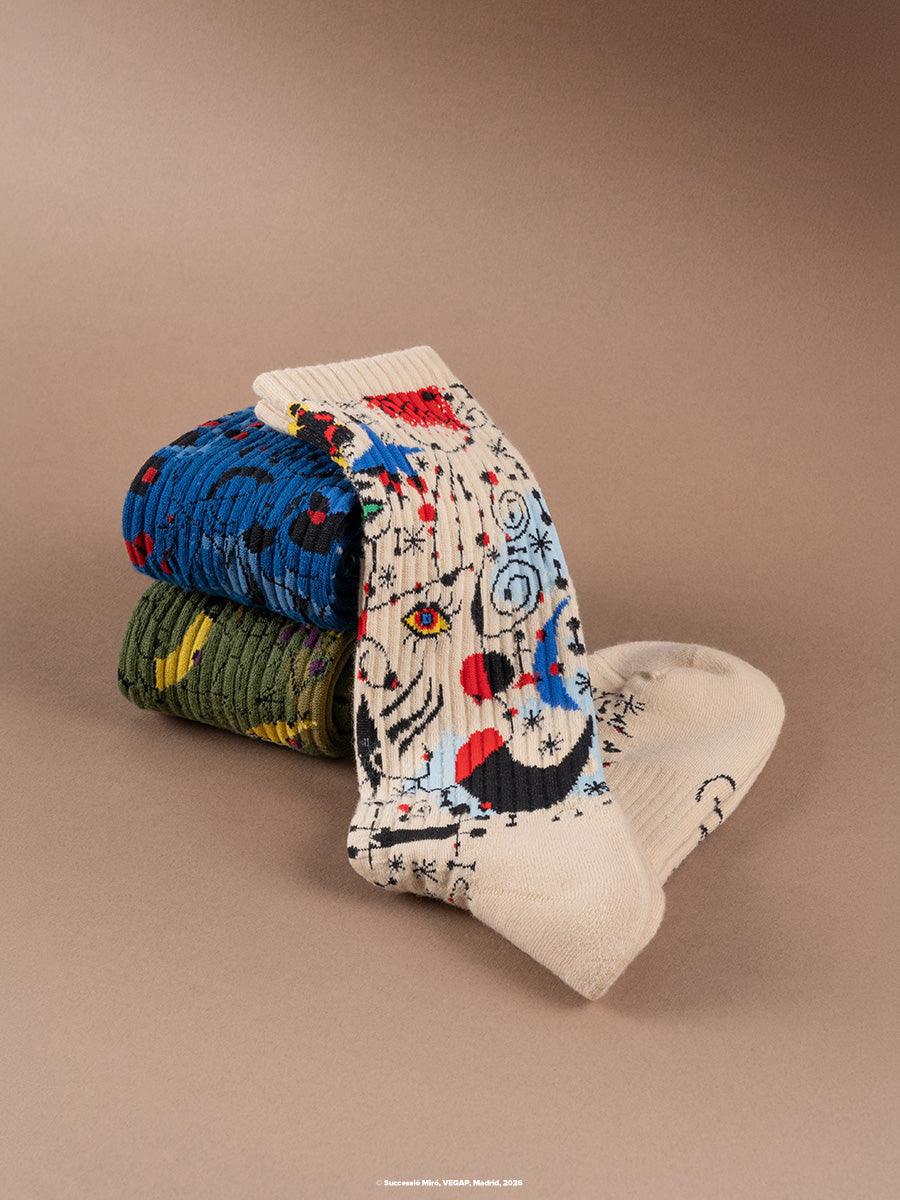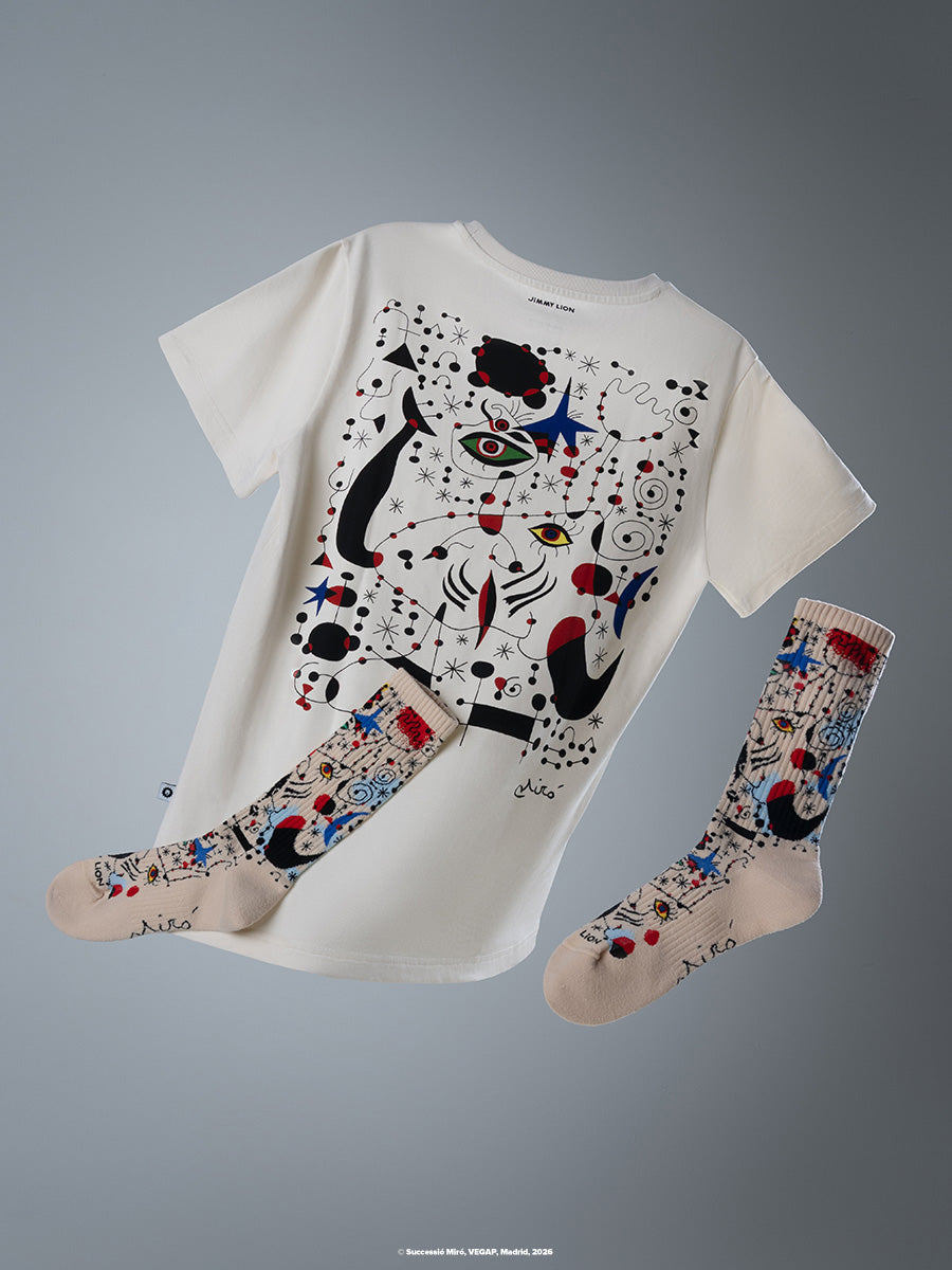 Descubre la colección Miró x Jimmy Lion: calcetines, camisetas y un pack regalo inspirados en el arte audaz e innovador de Joan Miró.