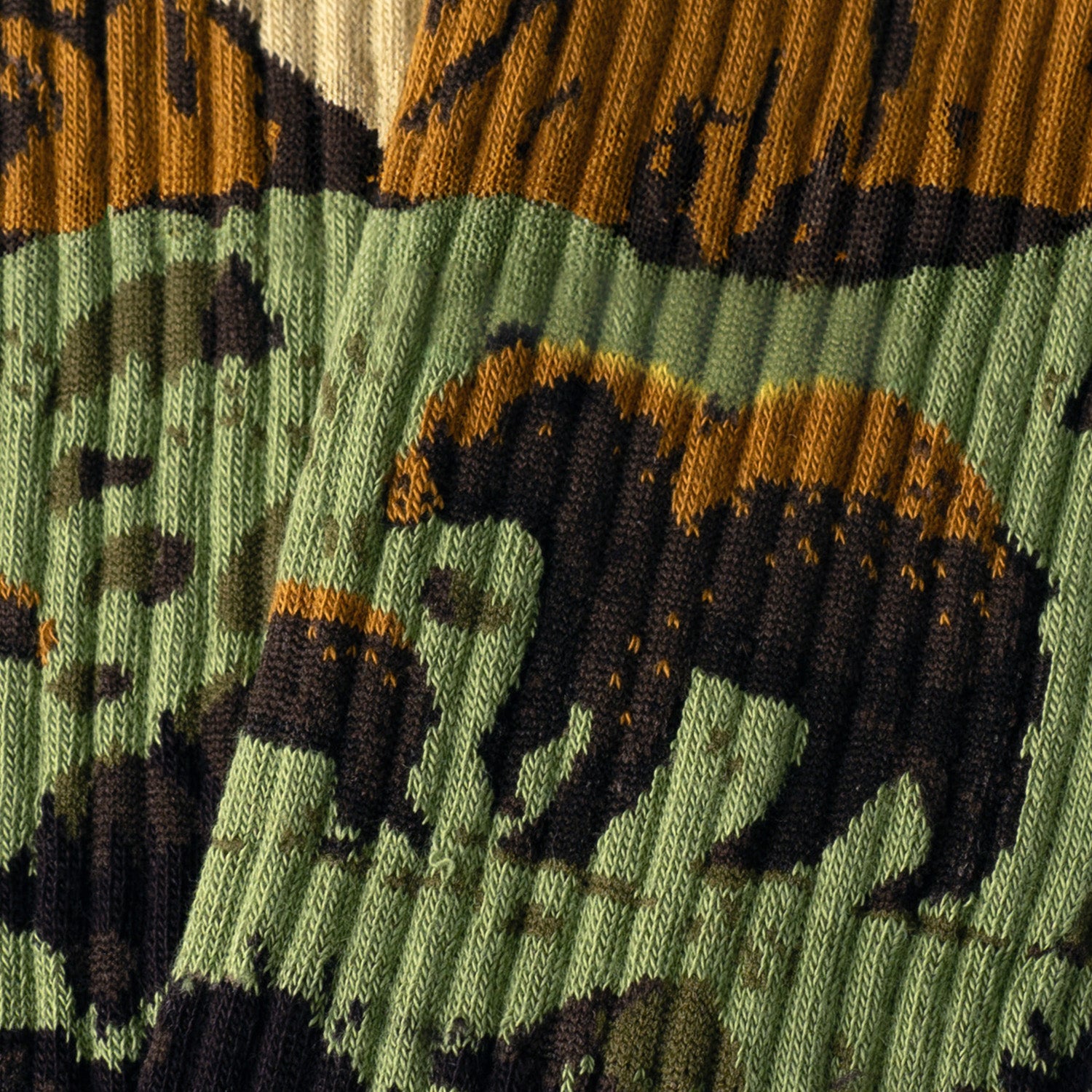 Calcetines deportivos unisex con diseño de un oso en plena naturaleza.
